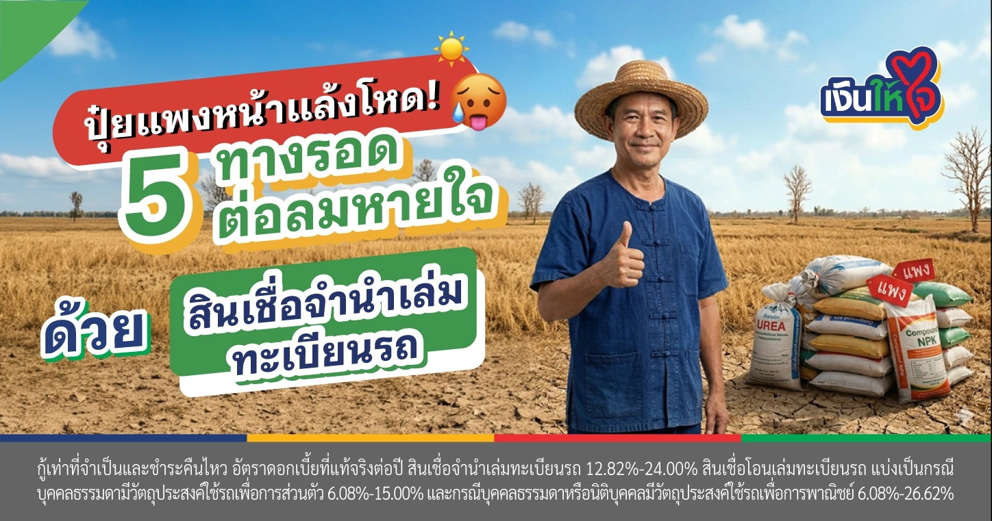 ปุ๋ยแพง หน้าแล้งโหด! รอดได้ด้วยสินเชื่อรถแลกเงิน 2026
