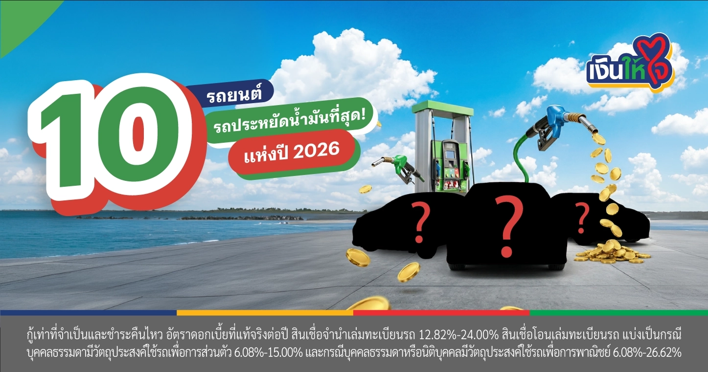 บทความนี้ เงินให้ใจ ได้รวบรวม 10 สุดยอดรถประหยัดน้ำมันแห่งปี 2026 ที่ผ่านการคัดเลือกโดยวัดจากอัตราการสิ้นเปลืองน้ำมัน และความนิยมในตลาด โดยเรียงลำดับจากรถที่ประหยัดน้ำมันมากที่สุด เพื่อช่วยให้คุณตัดสินใจได้ง่ายและรวดเร็วยิ่งขึ้น