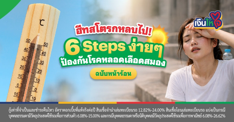เงินให้ใจ ผู้ให้บริการสินเชื่อรถยนต์ที่เข้าใจชีวิตคนไทย อยากให้ทุกคนดูแลสุขภาพควบคู่ไปกับการวางแผนการเงิน ในบทความนี้เราจึงรวบรวม 6 Steps ง่ายๆ ที่จะช่วยป้องกัน ฮีทสโตรก ให้คุณปลอดภัยตลอดหน้าร้อนนี้